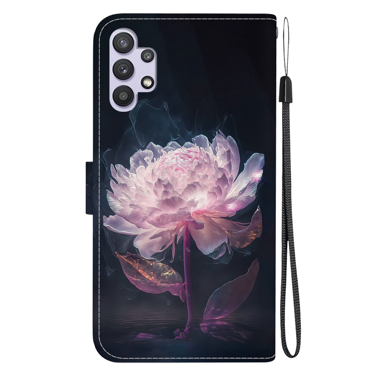 Funda para Teléfono Samsung Galaxy A32 4G Cuero Dibujo Coloreado Textura de Cristal (Peonía Púrpura)