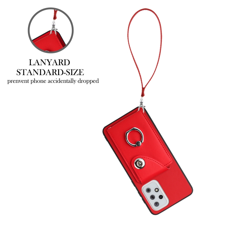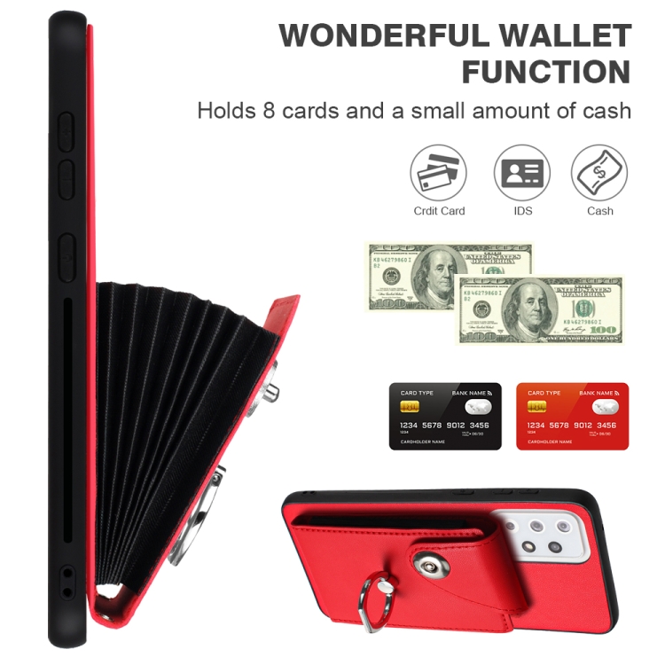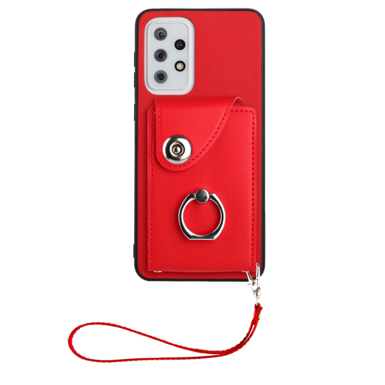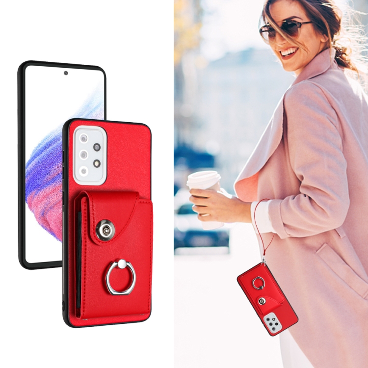Funda para Teléfono Samsung Galaxy A33 5G de PU con Soporte para Anillo y Bolsa para Tarjeta con Cordón (Rojo)