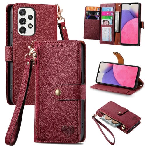 Funda para Samsung Galaxy A33 5G Love Zipper Lanyard Cuero (Rojo)