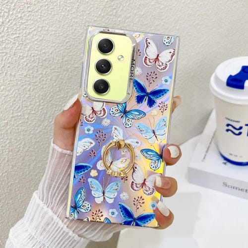 Estuche para teléfono Samsung Galaxy A34 5G con soporte anillo mariposa láser galvanoplastia (Mariposas Azules)