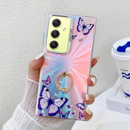 Estuche para Teléfono Samsung Galaxy A34 5G con Soporte Anillo Mariposa Láser Galvanoplastia (Morado)