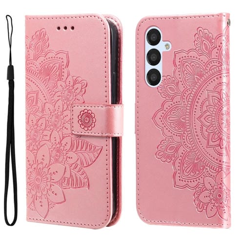 Estuche para teléfono Samsung Galaxy A34 5G Cuero con estampado de flores de 7 pétalos (Oro Rosa)