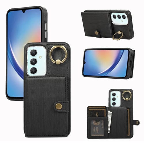 Funda para Teléfono Samsung Galaxy A34 5G con Soporte para Anillo y Billetera con Textura Cepillada (Negro)
