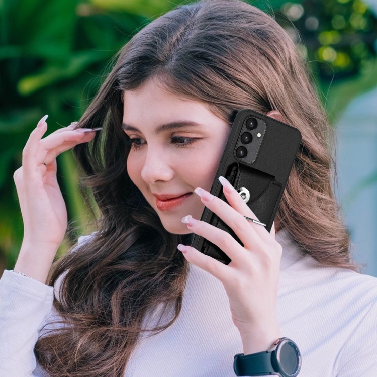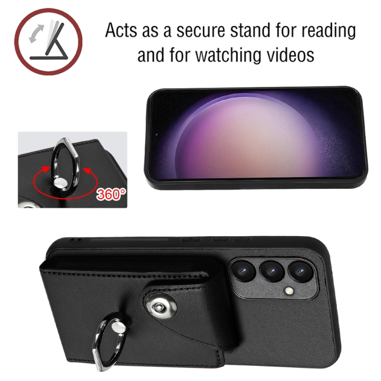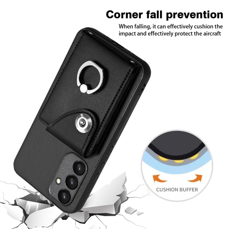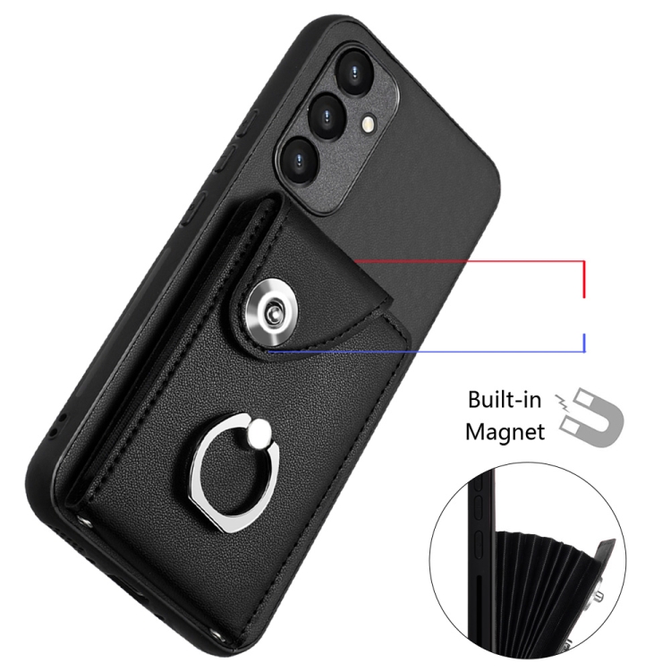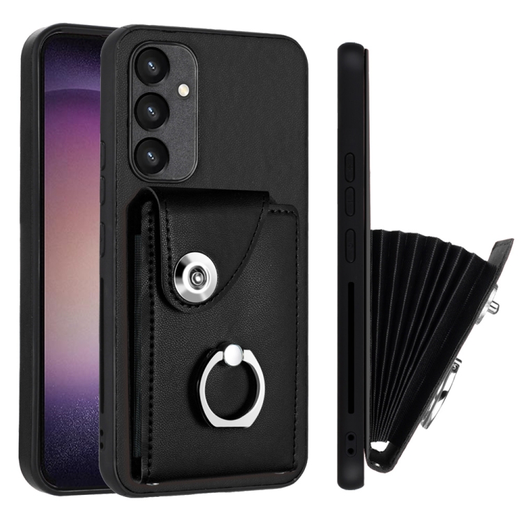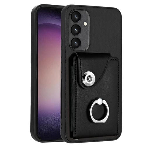 Funda para Teléfono Samsung Galaxy A34 5G de PU con Soporte para Anillo y Bolsa para Tarjeta de Órgano (Negro)
