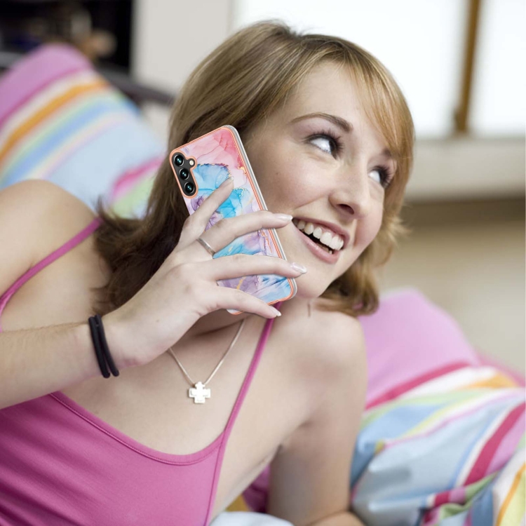 Funda para Samsung Galaxy A35 5G Imd TPU con Galvanoplastia Mármol Azul