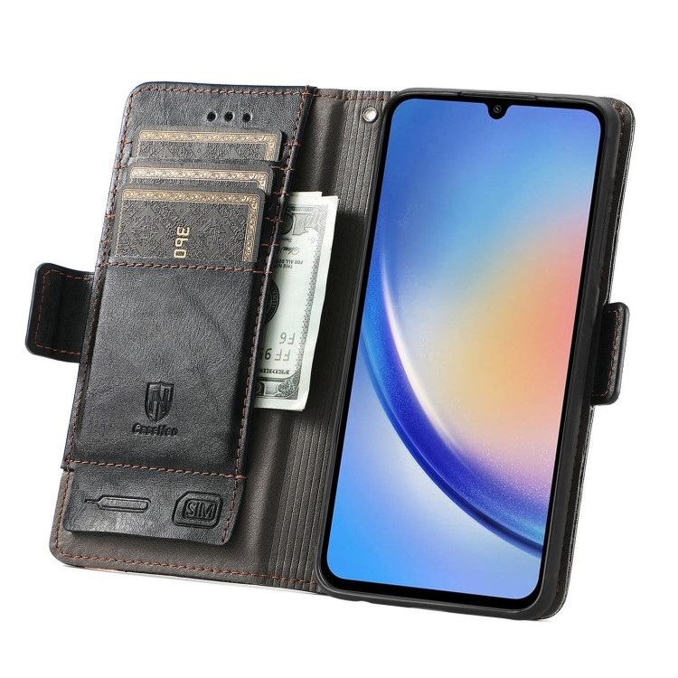Funda para Samsung Galaxy A35 5G Caseneo Splicing Cuero con Hebilla Magnética Dual (Negro)