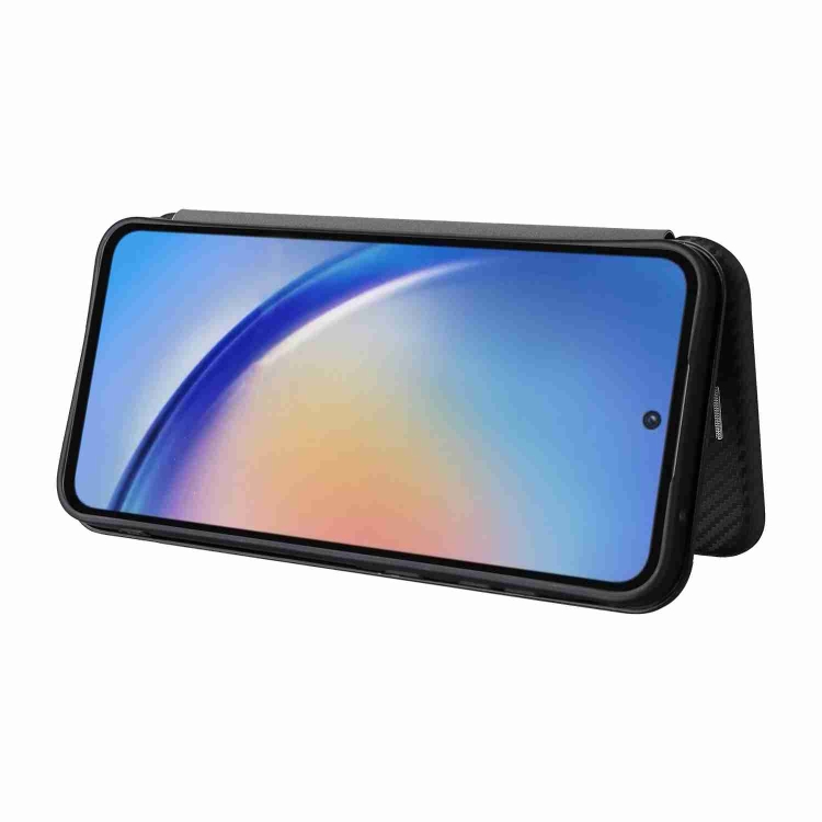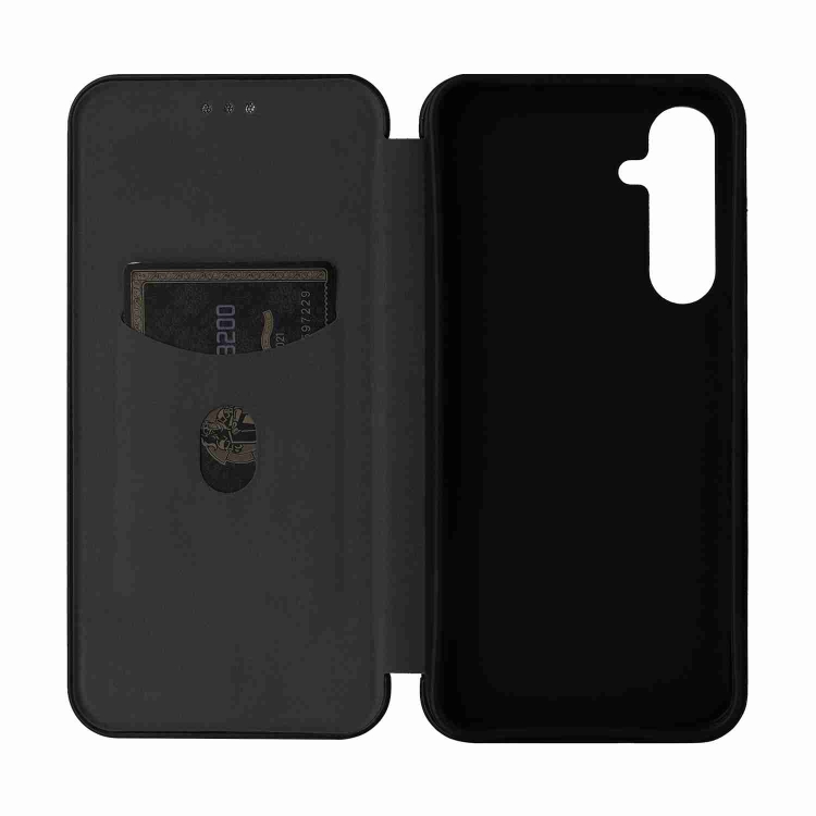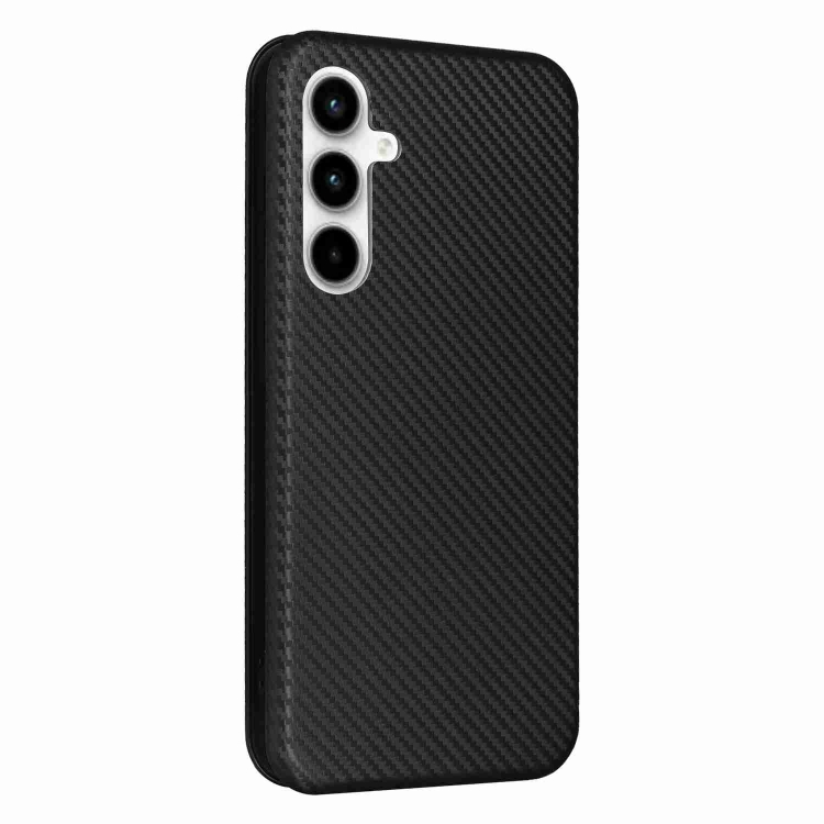 Funda para Samsung Galaxy A35 5G de Cuero con Tapa y Textura de Fibra de Carbono (Negro)