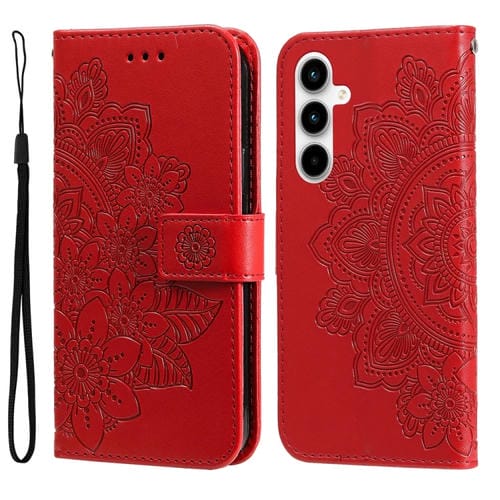 Funda para Teléfono Samsung Galaxy A35 Cuero Estampado Flores 7 Pétalos (Rojo)