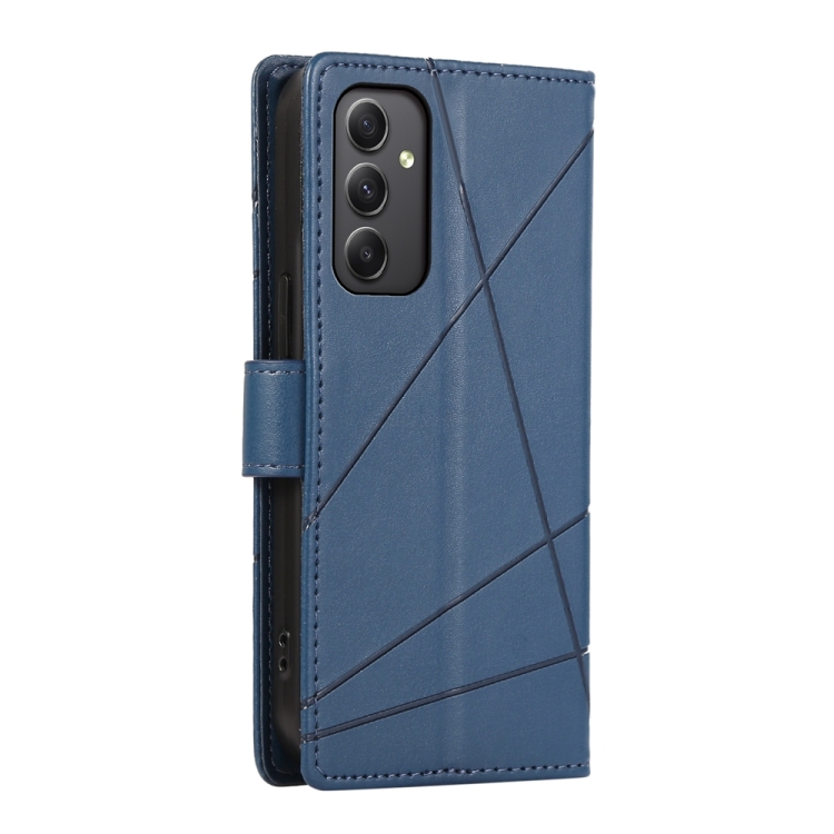 Funda para Teléfono Samsung Galaxy A35 con Línea en Relieve y Textura de Cuero Genuino (Azul)