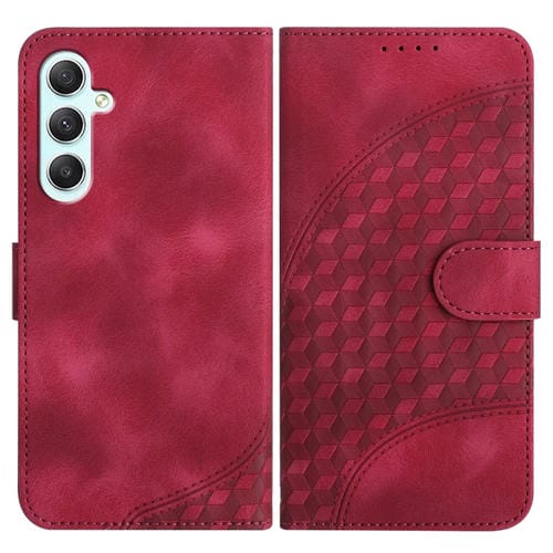 Funda de Cuero Samsung Galaxy A35 Yx0060 con Relieve y Cabeza de Elefante con Cordón (Rojo Rosa)