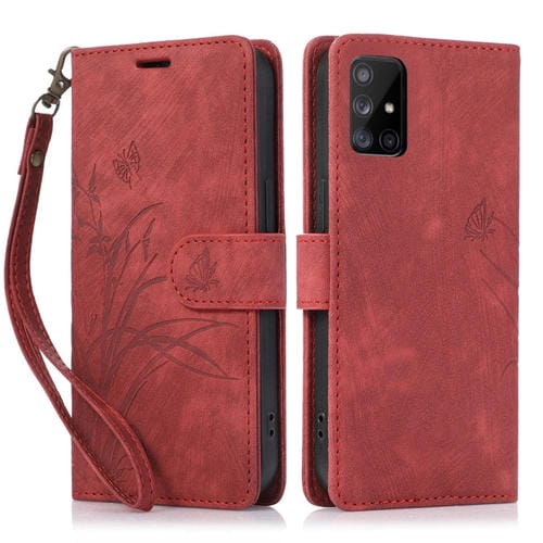 Funda para Teléfono Samsung Galaxy A51 4G Cuero Relieve Mariposa Orquídea (Rojo)