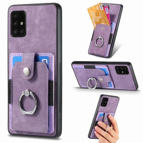 Funda para Teléfono Samsung Galaxy A51 con Billetera, Tarjeta y Anillo con Sensación de Piel Retro (Púrpura)