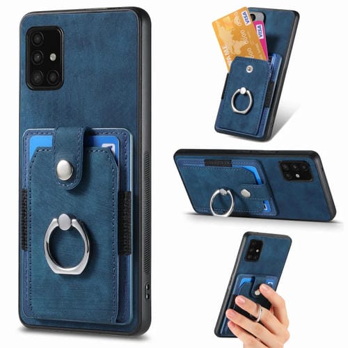 Funda para Teléfono Samsung Galaxy A51 con Billetera y Tarjeta con Anillo y Sensación de Piel Retro (Azul)