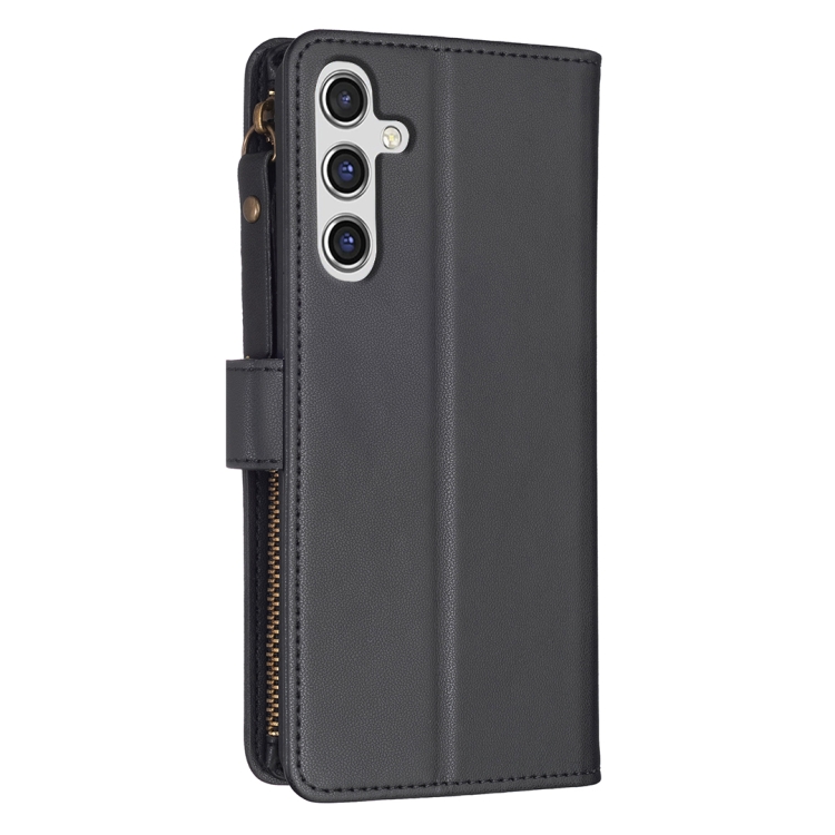 Funda para Samsung Galaxy A55 Cartera con 9 Ranuras para Tarjetas Cremallera Cuero con Tapa (Negro)