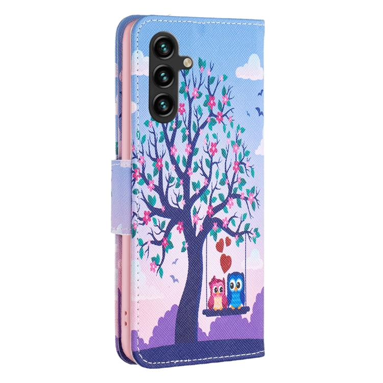Funda de Cuero Samsung Galaxy A55 con Patrón de Dibujo de Colores (Búho)