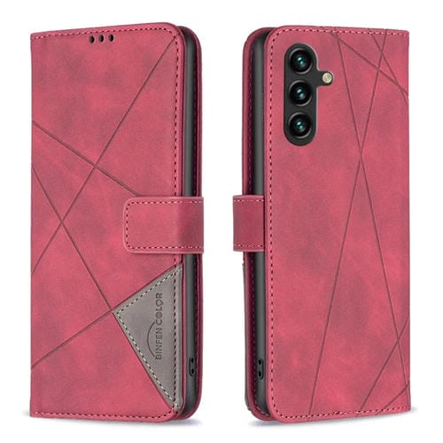 Funda para Teléfono Samsung Galaxy A55 Cuero Textura Rombo Hebilla Magnética (Rojo)