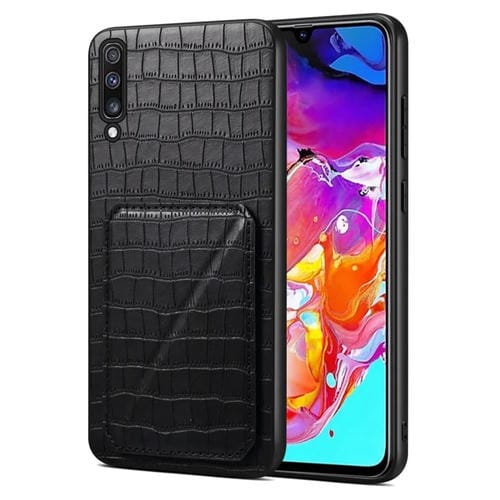 Funda Trasera Samsung Galaxy A70 Denior Piel de Cocodrilo con Soporte (Negro)
