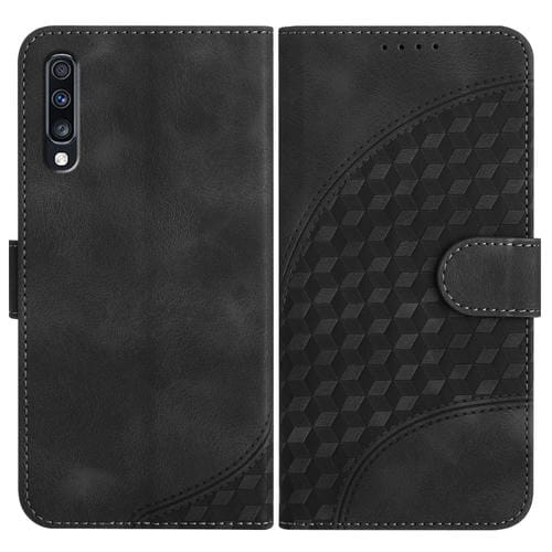 Funda de Cuero Samsung Galaxy A70 Yx0060 con Relieve y Cabeza de Elefante con Cordón (Negro)