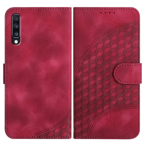 Funda para teléfono Samsung Galaxy A70 Yx0060 cuero con relieve y cabeza de elefante con cordón (Rojo Rosa)