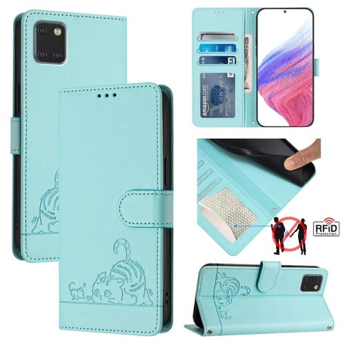 Estuche para teléfono Samsung Galaxy A81 Note10 Lite M60S cuero Rfid patrón en relieve con cordón (Verde Menta)