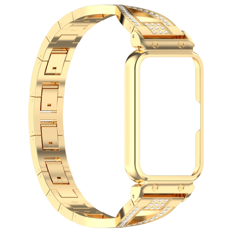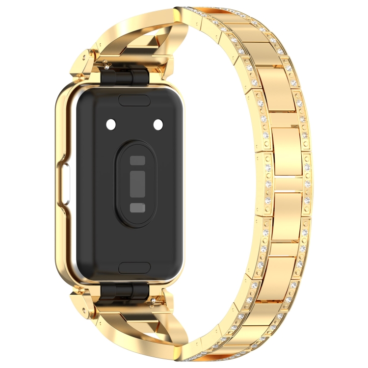 Banda de Reloj para Samsung Galaxy Fit 3 con Marco de Metal y Diamante Doble Fila en Forma de X (Dorado)