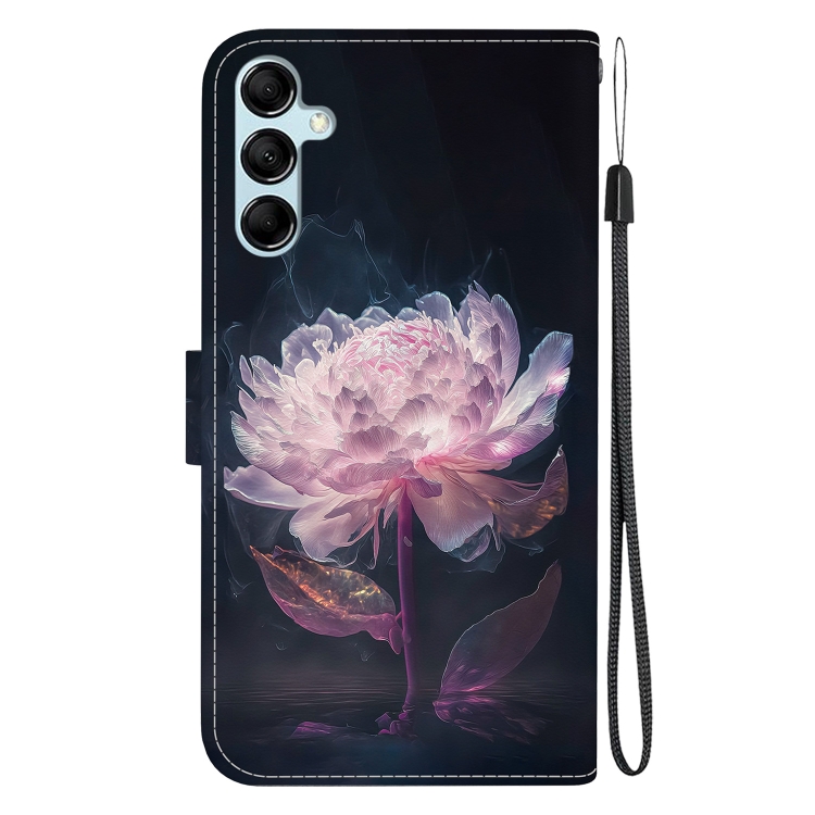 Funda para Teléfono Samsung Galaxy M14 Cuero Dibujo Coloreado Textura de Cristal (Peonía Púrpura)