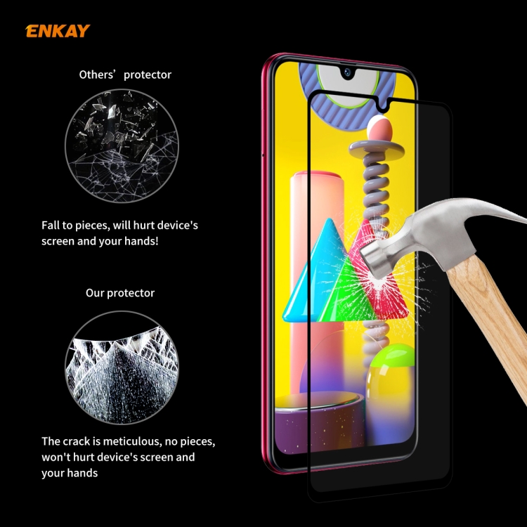 Película de Vidrio Templado Enkay Hat-Prince para Samsung Galaxy M31 M21 Full Glue 0.26mm 9H 2.5D