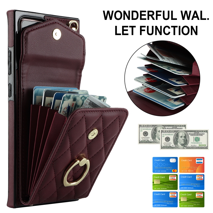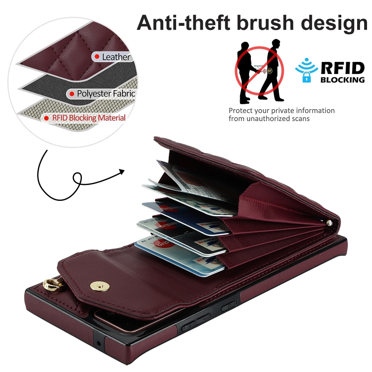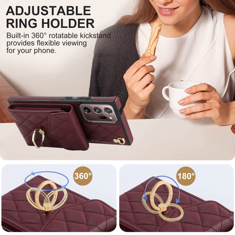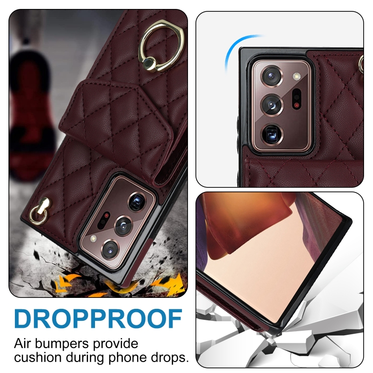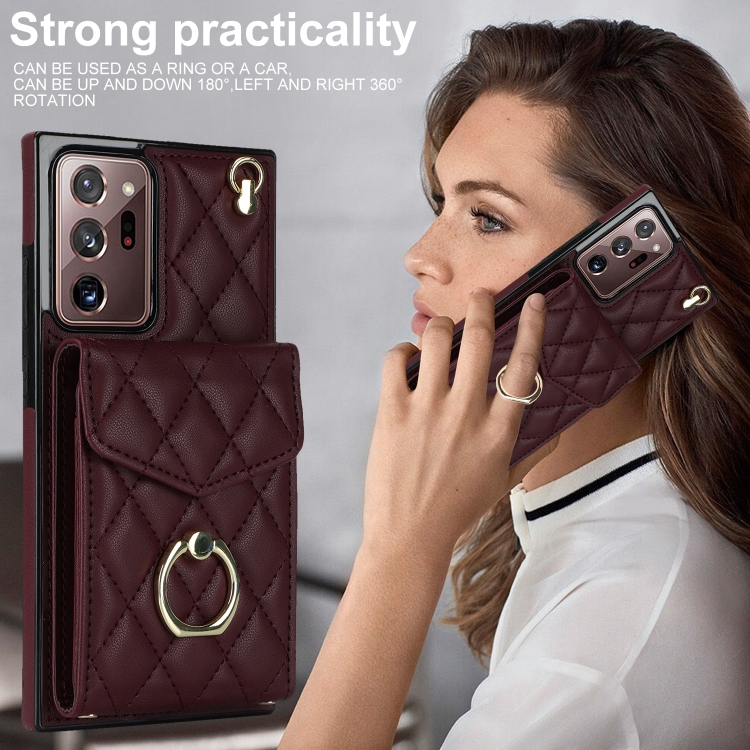 Funda para Teléfono Samsung Galaxy Note20 Ultra Rhombic Texture Card Bag con Cordón Largo (Rojo Vino)