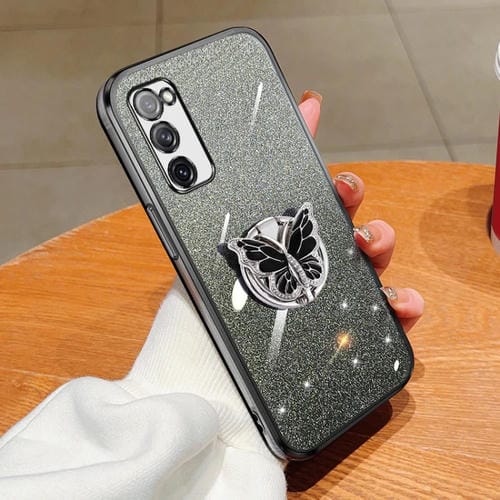 Estuche para teléfono Samsung Galaxy S20 FE TPU con soporte de mariposa y brillo degradado (Negro)