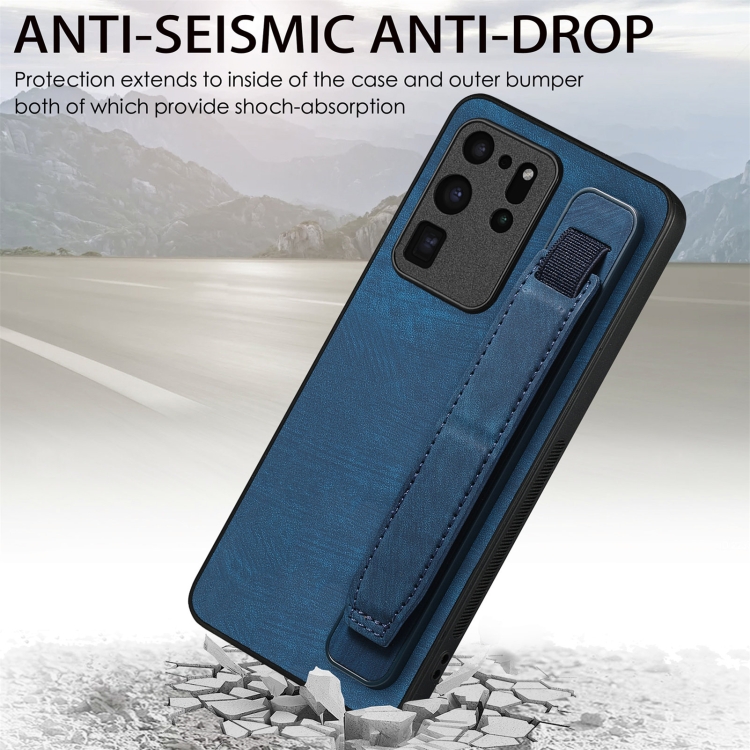 Funda Trasera Samsung Galaxy S20 Ultra 5G Cuero con Soporte para Pulsera (Azul)