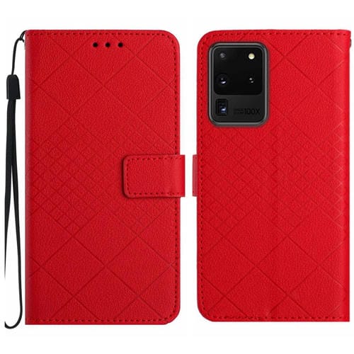 Funda para Samsung Galaxy S20 Ultra Cuero Textura Rejilla Rómbica (Rojo)