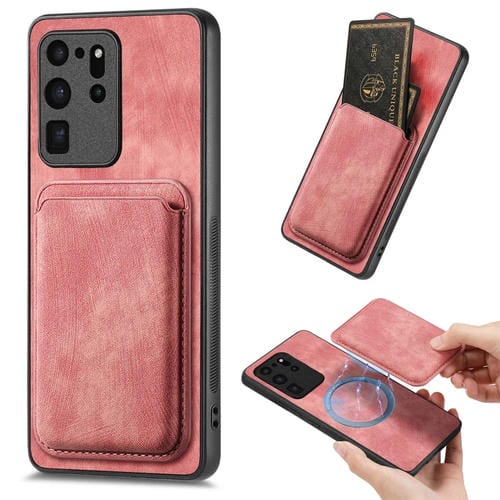 Funda de Cuero para Samsung Galaxy S20 Ultra Retro con Tarjeta Magnética (Rosa)