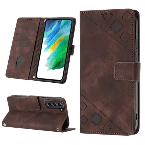 Estuche para Teléfono Samsung Galaxy S21 FE 5G Cuero En Relieve con Tacto de Piel (Marrón)
