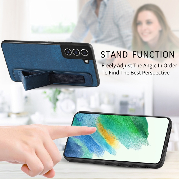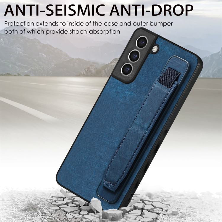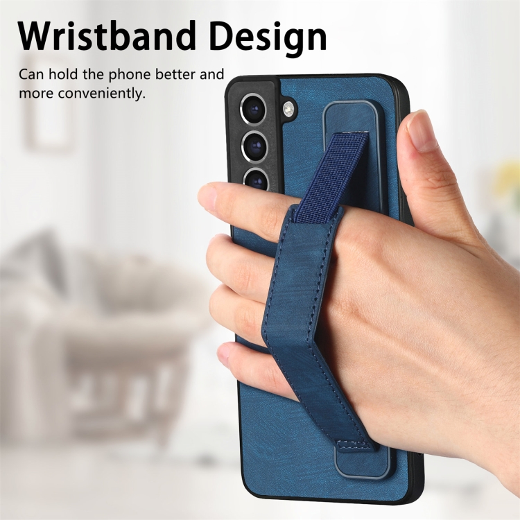 Funda Trasera para Samsung Galaxy S21 FE 5G Cuero con Soporte para Pulsera (Azul)