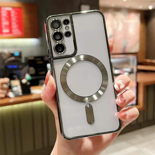 Funda para Teléfono Samsung Galaxy S21 Ultra 5G TPU con Galvanoplastia Magsafe (Verde)
