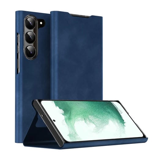 Funda magnética de cuero para Samsung Galaxy S22 + 5G con textura de Napa y soporte (Azul)