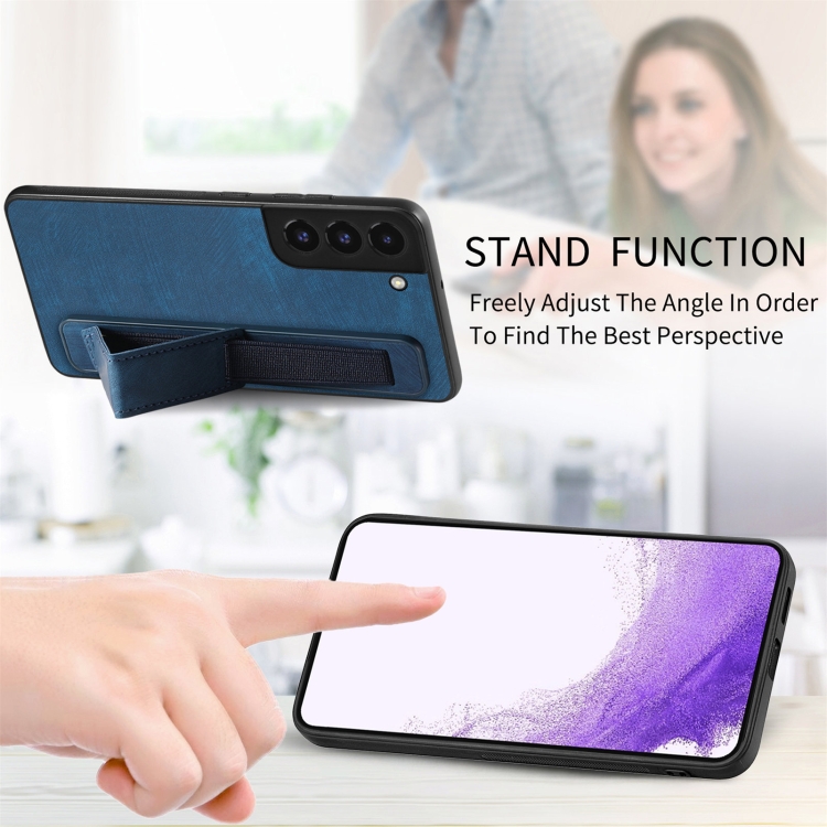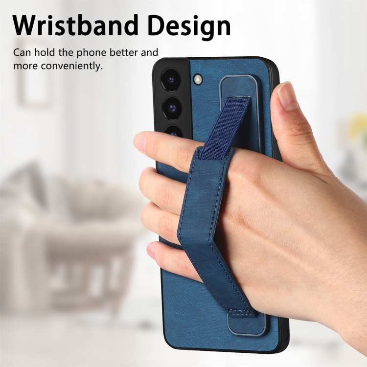 Funda Trasera para Samsung Galaxy S22 + 5G Cuero con Soporte para Pulsera (Azul)
