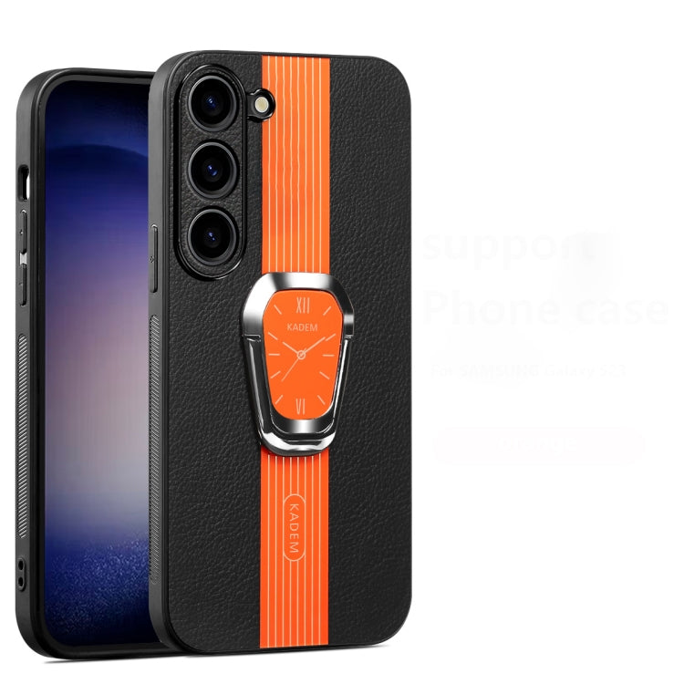 Estuche Magnético Samsung Galaxy S23 5G con Parte Trasera de Cuero Litchi y Soporte (Naranja)