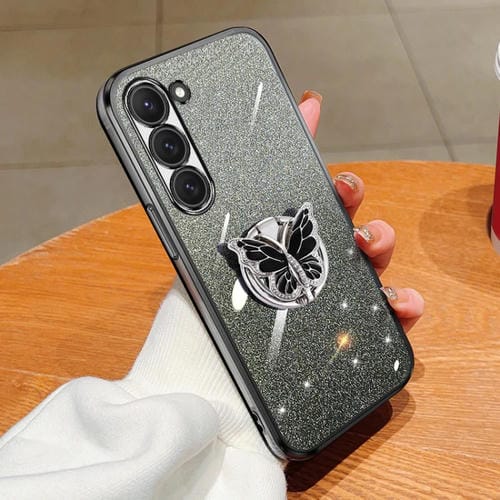 Estuche para Teléfono Samsung Galaxy S23 5G TPU con Soporte Mariposa Brillo Degradado (Negro)