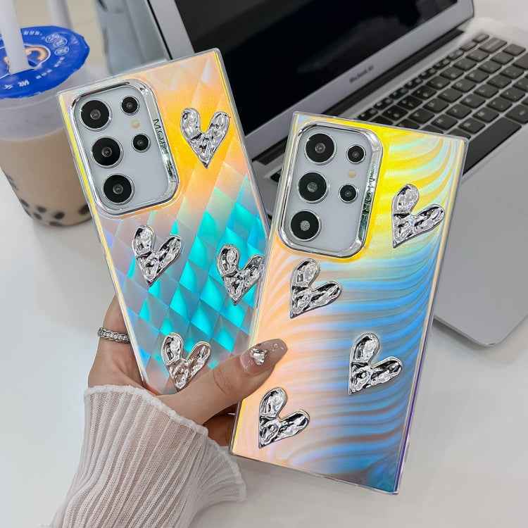 Caja de teléfono TPU Samsung Galaxy S23+ 5G Galvanoplastia Textura Láser 4 Corazones (Hilo de Plumas)