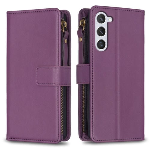 Estuche para Teléfono Samsung Galaxy S24 5G 9 Ranuras para Tarjetas Tapa de Cuero con Billetera con Cremallera (Púrpura Oscuro)