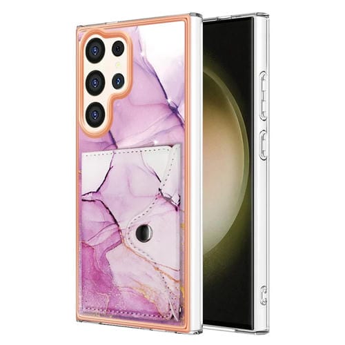 Estuche para Teléfono Samsung Galaxy S24 Ultra 5G con Ranura para Tarjeta Imd Patrón Mármol (Oro Rosa Púrpura)