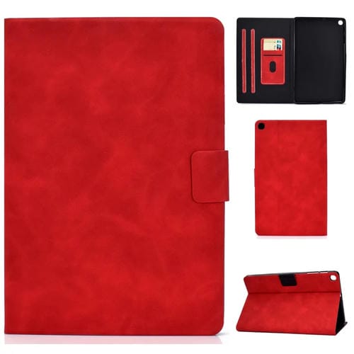 Pour Samsung Galaxy Tab A 10.1 (2019) T510 / T515 Étui en cuir à rabat horizontal à texture de peau de vache avec support et fentes pour cartes (rouge)