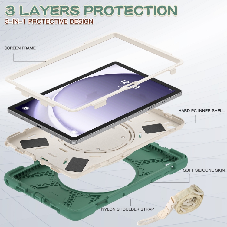 Funda híbrida de silicona Samsung Galaxy Tab A9 para Tablet con soporte y correa para el hombro (Verde Esmeralda)