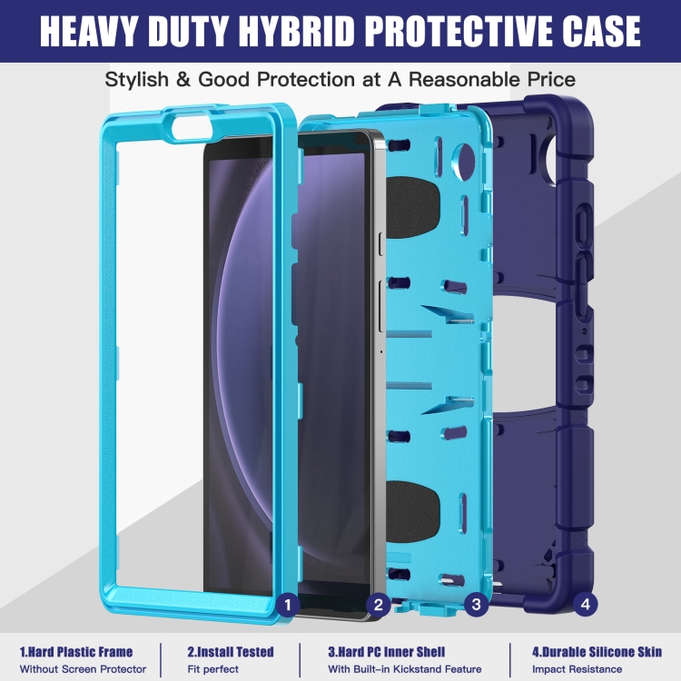 Marco de Pantalla + Funda para Tablet Samsung Galaxy Tab A9 Protección 3 Capas Silicona Soporte (Azul Marino + Azul)