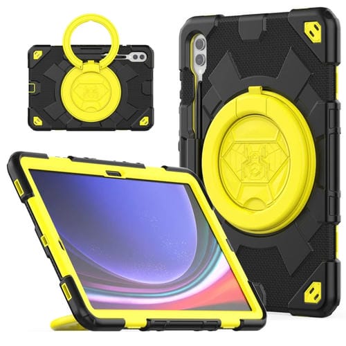 Funda para Tablet Samsung Galaxy Tab S9 Spider Rotation Handle Híbrida Silicona PC (Negro Amarillo)