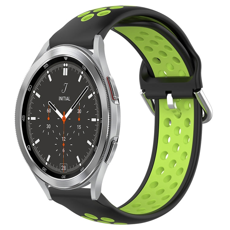 Banda de Reloj silicona para Samsung Galaxy Watch 4 Classic 46mm 20mm deportiva perforada (Negro + Lima)