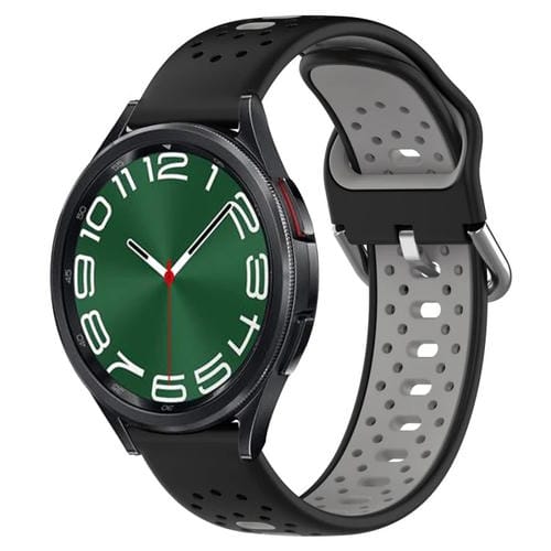 Banda de Reloj de Silicona para Samsung Galaxy Watch 6 Classic 43mm 20mm Dos Colores Transpirable (Negro + Gris)