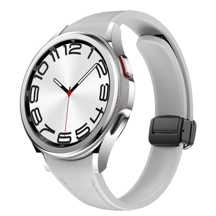 Correa de silicona y cuero para Samsung Galaxy Watch 6 con hebilla magnética delgada (Gris Claro)