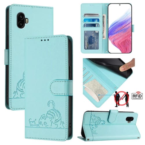 Estuche para Teléfono Samsung Galaxy Xcover6 Pro Cuero Rfid Patrón En Relieve y Cordón (Verde Menta)